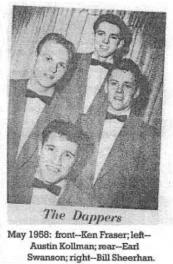 The Group sang together for four Years, 1956-60, some 700 shows in all. Then each member, facing the draft, entered the military and the Dappers Disbanded.